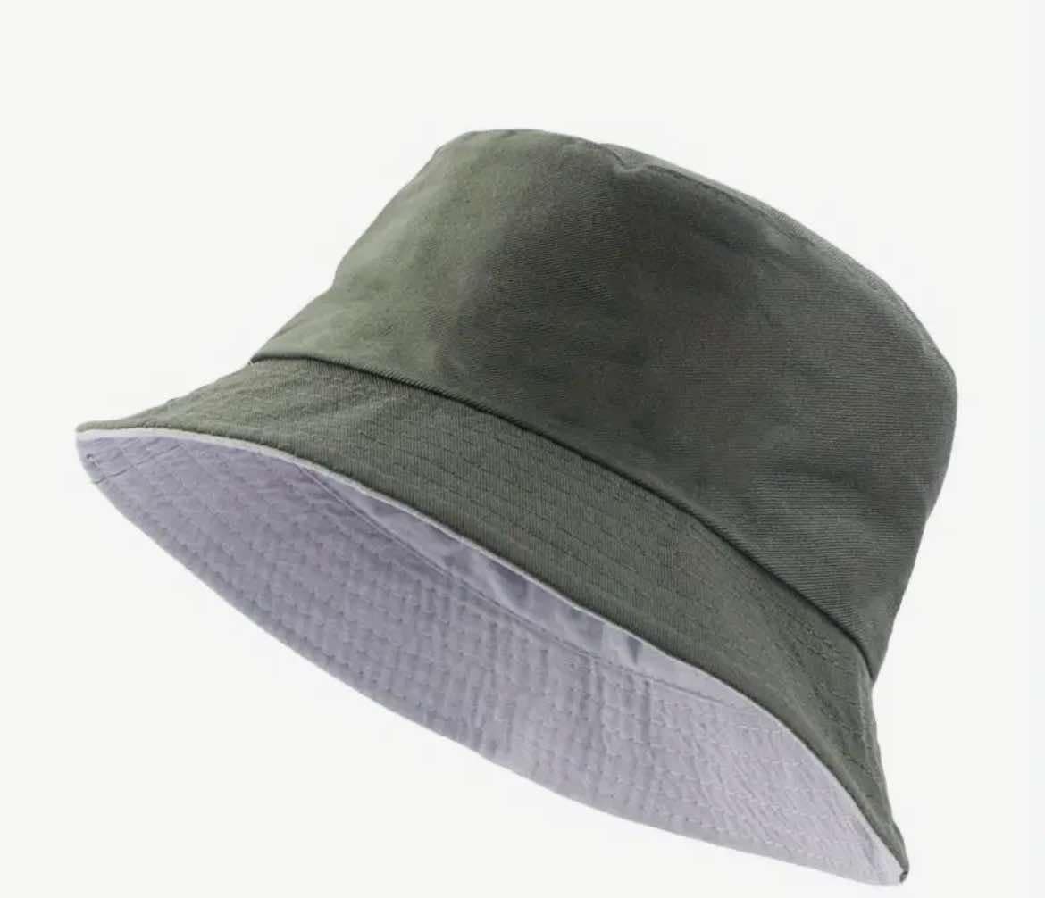 Please describe the color of the hat in the comments. (white, black, green, branched khaki, gray)